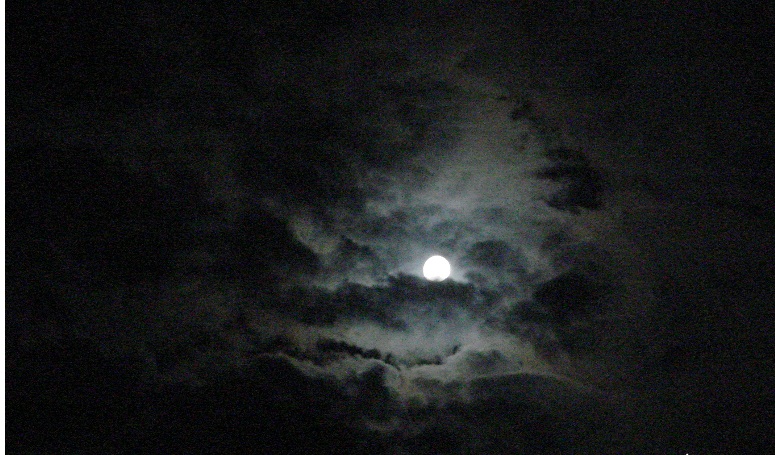 The woman was so caught up in the display that it came as a surprise when the clouds drifted beyond the glow of the moon. Soon the sky would be entirely clear.