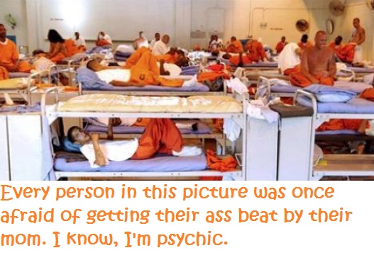 I bet you didn’t know that I’m psychic. For example, I predict that my 2 year old will hit someone and my 6 year old with start screaming at her sister before I finish writing this blog post. Further, I predict that if you go to a big media story about that school bus monitor who was bullied by a group of 7th grade boys, the comments sections will be filled with people claiming that what these kids need to turn them around is a good ass-wupping. Further, I am so psychic that I already know that at some point in the last couple of years there were a flurry of “I spank my kids so they don’t wind up in jail” messages on your facebook feed. And if you can stand one last display of my amazing psychic prowess, I predict that not a single one of those people talking about keeping their kids out of jail or how kids causing trouble just need a good ass-wuppin’ have actually spent time working with children in juvi. Not. A. Single. One. Of. Them.